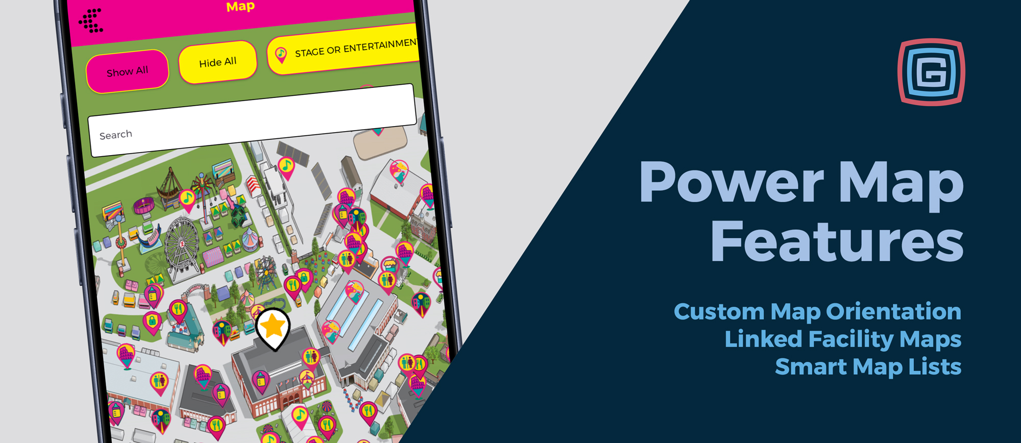 We’ve added several new map features designed to make navigation and exploration in your app even more intuitive. From better orientation to deeper facility linking, these updates continue to make Power Maps one of the most flexible tools for events, venues, and communities of all sizes.